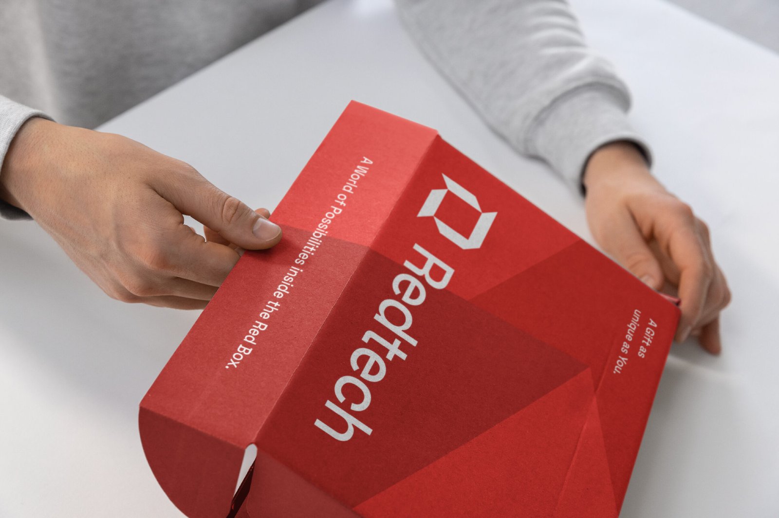 For this proposed rebrand, the design direction centered around the idea of order within complexity. The logomark, constructed by carving the letter R from a square, speaks to Redtech’s commitment to clarity, structure, and dependability in the digital space. The square form reinforces stability, a crucial value in fintech while the angular R brings movement and confidence.